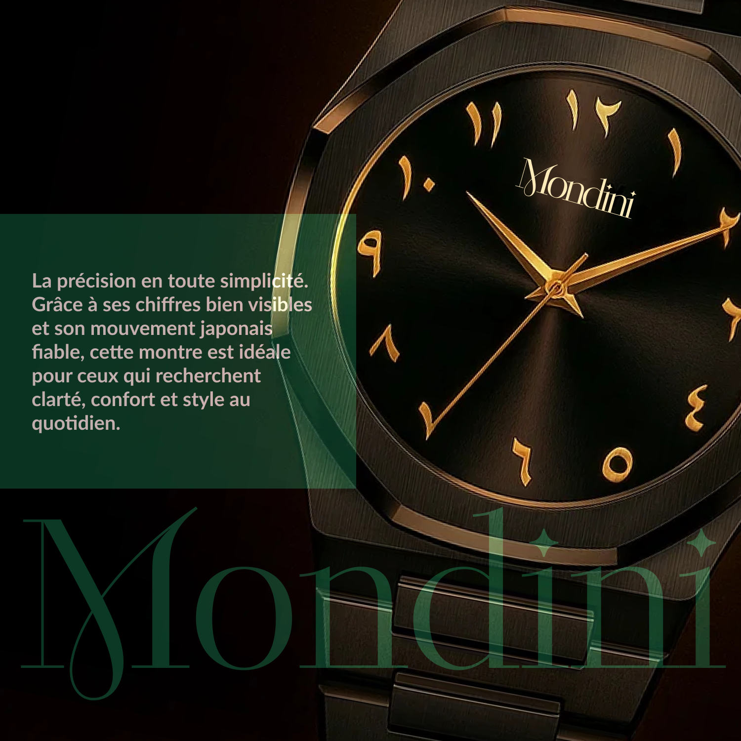 Chaque montre Mondini est fabriquée avec des matériaux de première qualité : acier inoxydable résistant, verres minéraux durables et finitions soignées. Ces choix garantissent un équilibre parfait entre élégance, confort et longévité.