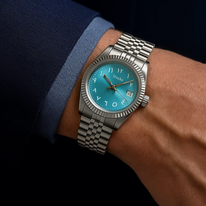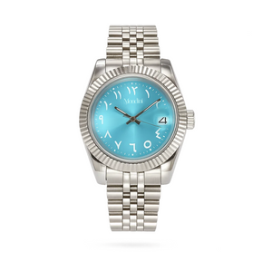 Avec son cadran bleu éclatant et ses chiffres arabes élégants, cette montre allie raffinement contemporain et identité forte. Le contraste subtil entre le boîtier en acier inoxydable et le bleu lumineux du cadran crée une pièce aussi intemporelle qu’originale.