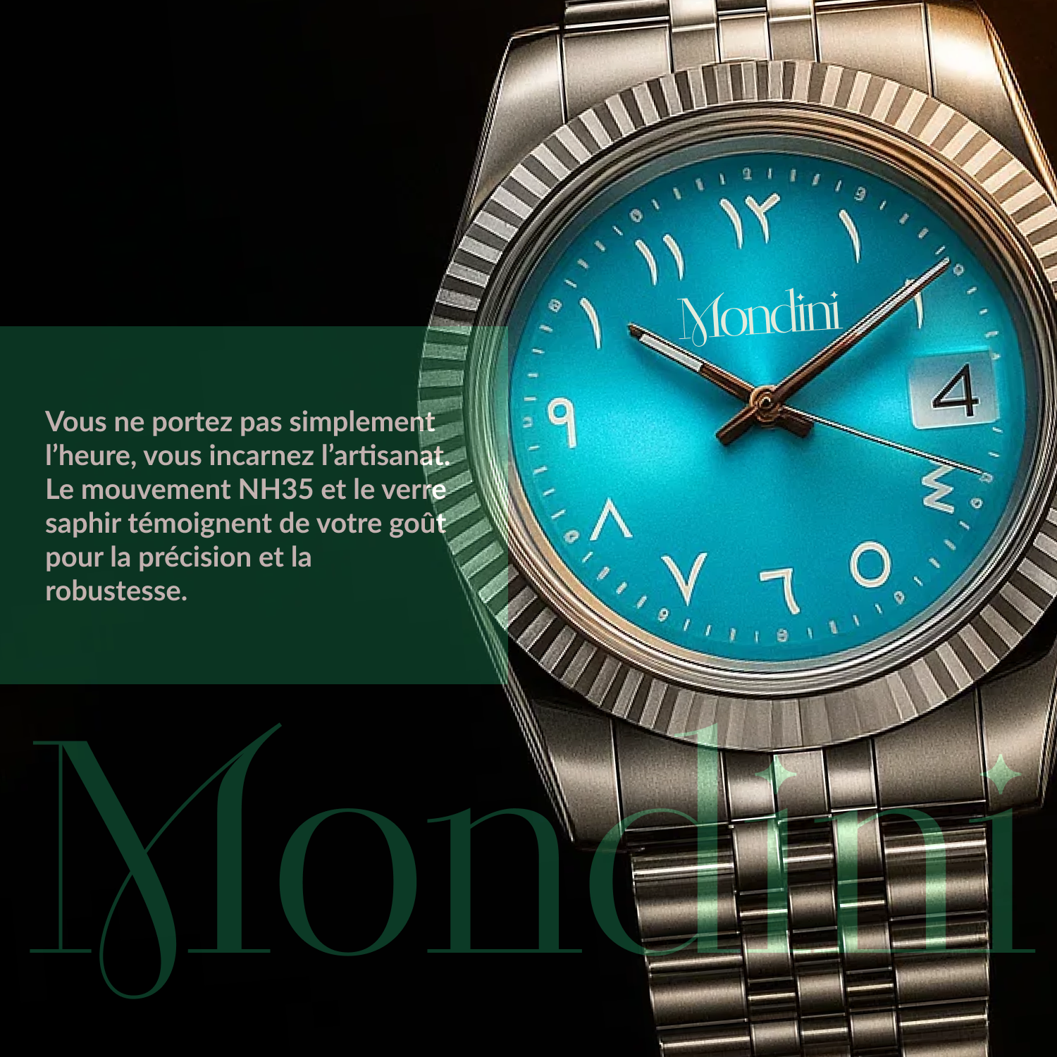 Chaque montre Mondini est fabriquée avec des matériaux de première qualité : acier inoxydable résistant, verres minéraux durables et finitions soignées. Ces choix garantissent un équilibre parfait entre élégance, confort et longévité.