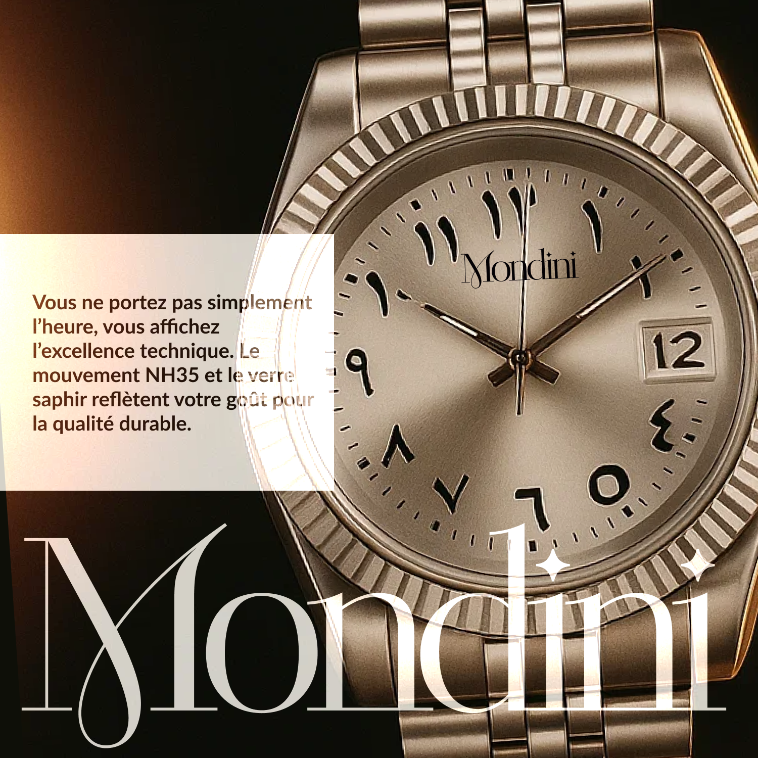 Chaque montre Mondini est fabriquée avec des matériaux de première qualité : acier inoxydable résistant, verres minéraux durables et finitions soignées. Ces choix garantissent un équilibre parfait entre élégance, confort et longévité.